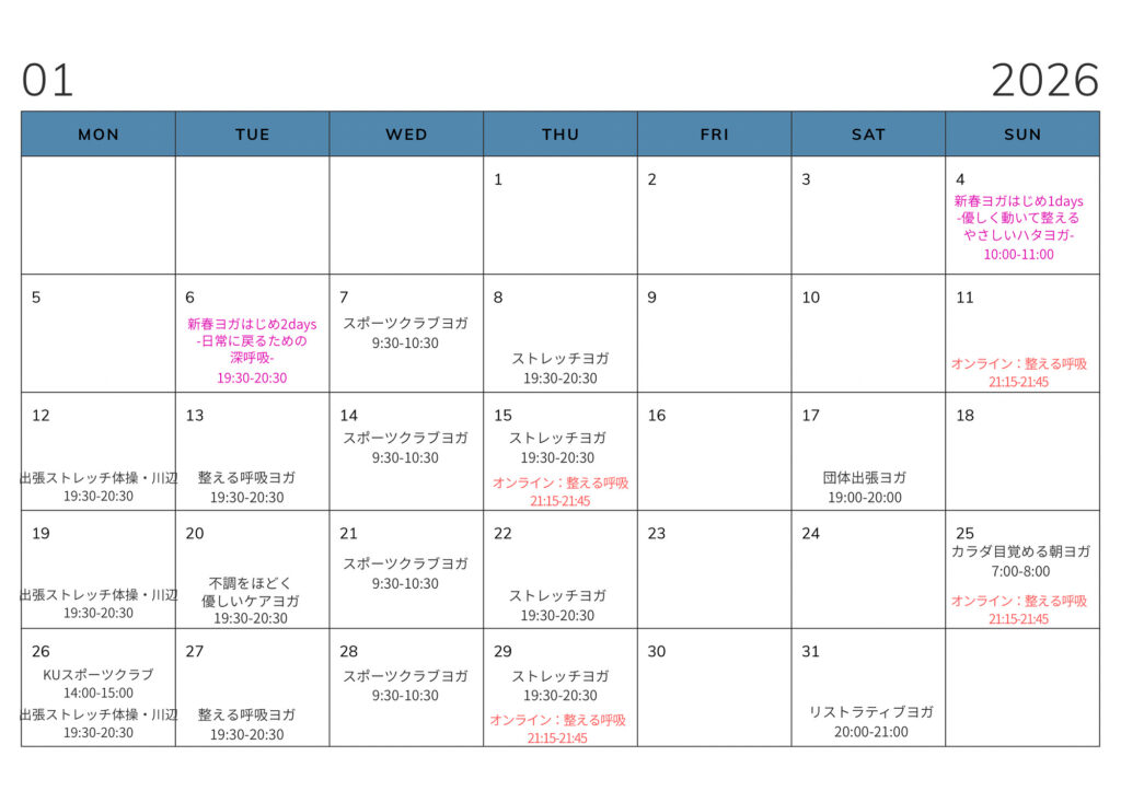 2026年1月のスケジュール